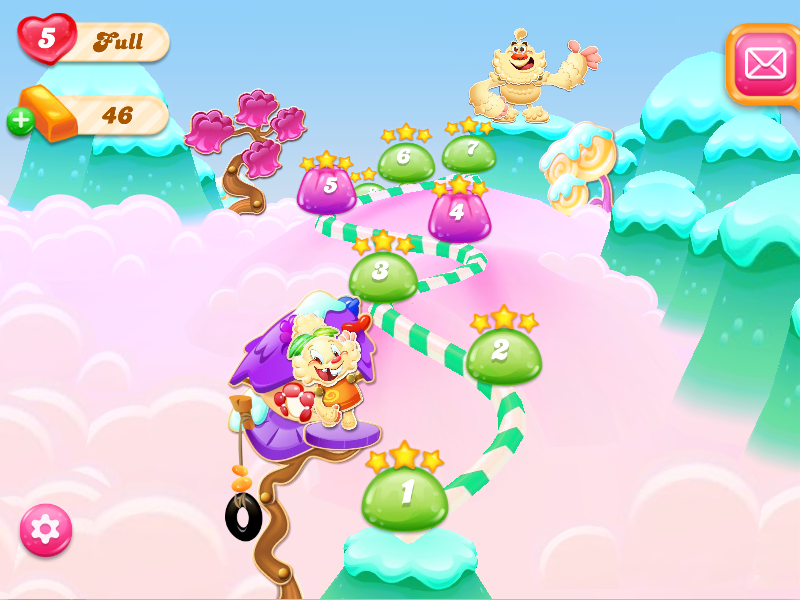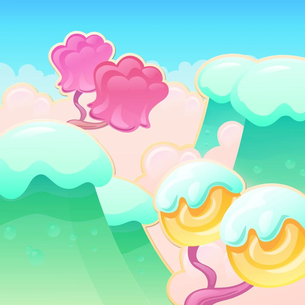 It is a mountainous appearance with Jelly Trees or called Tree Top. Characters may be on some of them like Jenny, Mr. Yeti. Go to level 5 and more, the player will see Mr. Yeti was trapped by Jelly Queen, and Jenny's adventure and rescue begin.